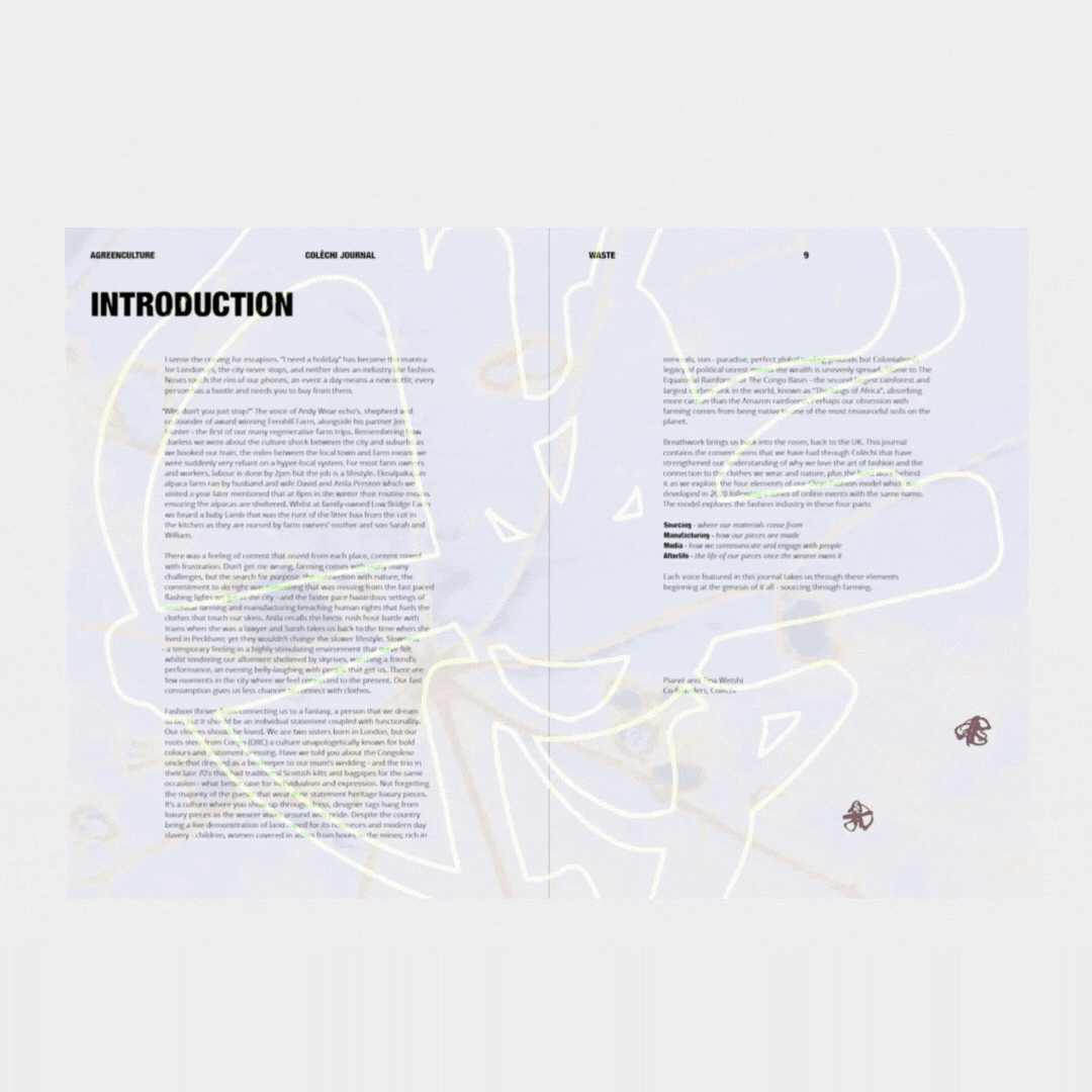 The journal contains 208 pages of essays, writings and photography giving both a local and international perception on farming and fashion. Blending academic research style with the aesthetic and approach of a magazine.